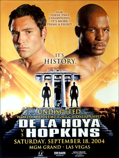 On Saturday, 18th September 2004, the highly anticipated fight between Bernard Hopkins and Oscar De La Hoya took place at the MGM Grand in Las Vegas, Nevada. This bout, promoted by Top Rank and aired on HBO Pay-per-view, showcased a clash between two boxing legends for the WBC, WBA, IBF, and WBO World Middleweight Titles. With a catchweight of 157 pounds agreed upon by both fighters, they stepped into the ring with De La Hoya weighing 155 lbs and Hopkins weighing 156 lbs. Experienced referee, Kenny Bayless, was tasked with overseeing the contest.