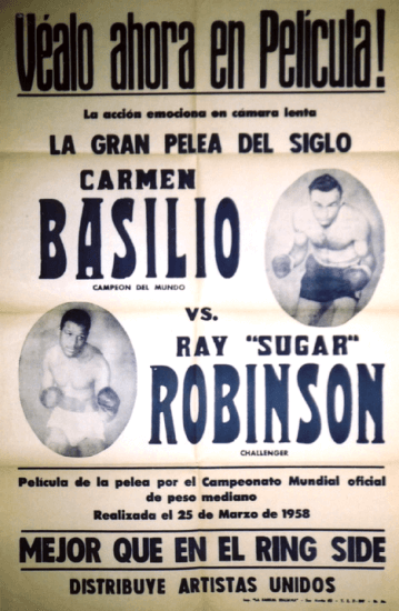 On the evening of Tuesday, March 25, 1958, boxing history was written at Chicago Stadium. With 17,976 spectators eagerly watching, the World Middleweight Title (1st defense by Basilio) fight took place between Ray Robinson and Carmen Basilio. Ray Robinson, residing in Harlem, New York, stepped into the ring with a record of 141-6-2 and weighed in at 159¾ lbs. His opponent, Carmen Basilio, hailed from Canastota, New York, and held a respectable record of 52-12-7 while weighing in slightly lighter at 153 lbs.