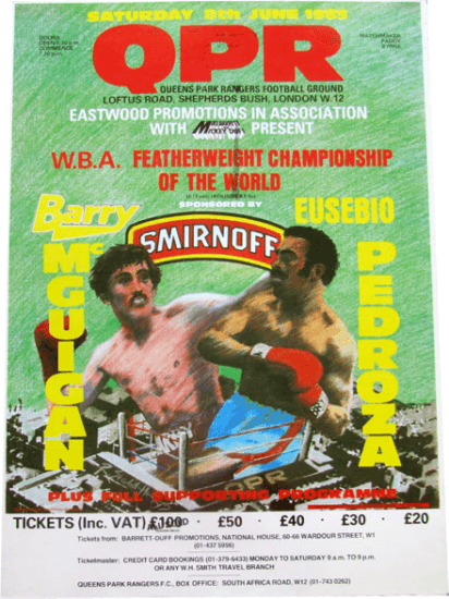 The WBA World Featherweight Title was up for grabs on 8th June 1985 at Loftus Road Stadium in Shepherd's Bush, London. The titleholder, Eusebio Pedroza, was facing challenger Barry McGuigan. The fight was promoted by Barney Eastwood and was refereed by Stanley Christodoulou. The match was televised live in the UK on the BBC.