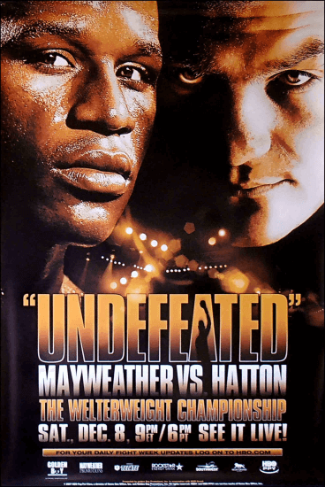The fight was dubbed "Undefeated," with both fighters boasting unblemished records. Mayweather entered the ring as the 2-1 favorite, and was guaranteed $11 million plus a percentage of the pay-per-view profits. Hatton had a $6 million guarantee, and it was only his second fight at welterweight.