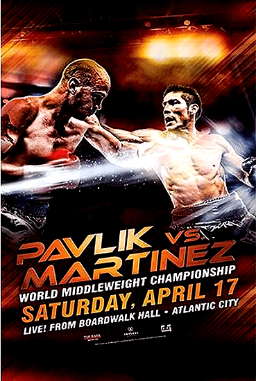 On Saturday, 17th April 2010, Kelly Pavlik and Sergio Martinez faced off at the Boardwalk Hall in Atlantic City for the WBC, WBO, and The Ring Magazine Middleweight titles. Promoted by Top Rank and DiBella Entertainment, the match was televised on HBO World Championship Boxing. Both fighters weighed in at 159½ lbs, with Pavlik holding a record of 36-1-0 and Martinez a record of 44-2-2.