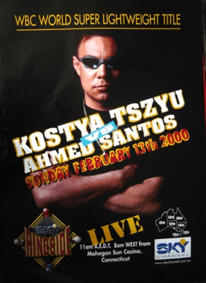 On February 12, 2000, Kostya Tszyu successfully defended his WBC World Super-lightweight title for the first time against Ahmed Santos at the Mohegan Sun Casino in Uncasville, Connecticut. The event was promoted by Main Events, Cedric Kushner Productions, and Dillon Productions Inc. and broadcast on Showtime. Tszyu, with a record of 23-1-0 at the time, weighed in at 139½ lbs, while Santos, with a record of 26-2-4, came in slightly heavier at 139¾ lbs.