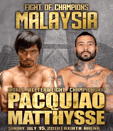 On Sunday, 15th July 2018, the Axiata Arena in Kuala Lumpur, Malaysia, played host to the highly anticipated WBA World Welterweight Title bout between Lucas Matthysse and Manny Pacquiao. Promoted by MP Promotions and aired on ESPN+, the fight marked the first title defense by Matthysse, who weighed in at 147 lbs. Pacquiao, who weighed in at 146 lbs, was looking to regain a world title after losing the WBO welterweight title to Jeff Horn the previous year.