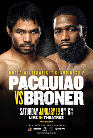 On January 19, 2019, the MGM Grand in Las Vegas, Nevada, hosted one of the most anticipated fights of the year. Manny Pacquiao, took on Adrien Broner in a 12-round welterweight title bout. The fight was promoted by TBG Promotions, Mayweather Promotions, About Billions Promotions, and MP Promotions and aired on Showtime Pay-per-view.