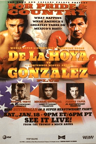 The January 18, 1997, clash between Oscar De La Hoya and Miguel Ángel González at the Thomas & Mack Center in Las Vegas was not only a showdown between two undefeated fighters but also a warm-up bout for De La Hoya's upcoming WBC World welterweight title meeting with Pernell Whitaker. Promoted by Top Rank and broadcast on HBO Pay-Per-View, the bout attracted considerable attention as it marked De La Hoya's first WBC Super Lightweight title defence. Both fighters weighed in at the 140-pound limit, with referee Mills Lane tasked with maintaining order in the ring.