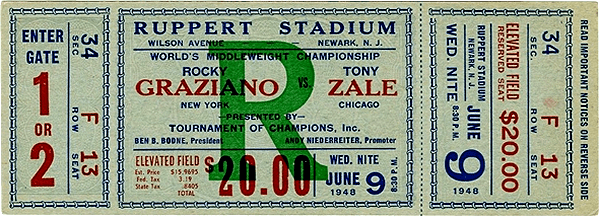 On June 10, 1948, Tony Zale and Rocky Graziano met for the third and final time in their legendary trilogy at Ruppert Stadium in Newark, New Jersey. The fight, originally scheduled for June 9, was postponed by one day due to rain. Graziano, the defending World Middleweight Champion, was a 12 to 5 favourite against Zale.