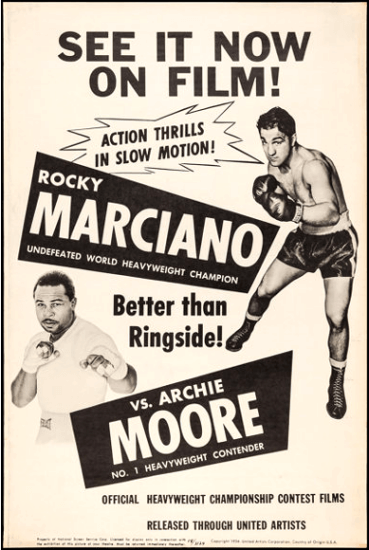 On the 21st of September, 1955 at Yankee Stadium, World Heavyweight Champion Rocky Marciano defended his title for the 6th time, facing off against the reigning World Light Heavyweight Champion, Archie Moore. The match, which had been postponed by 24 hours due to Hurricane Ione, drew an audience, of 61,574 spectators to the stadium and an additional 320,000 fans watching via Theatre Network Television from 129 locations in 92 cities.