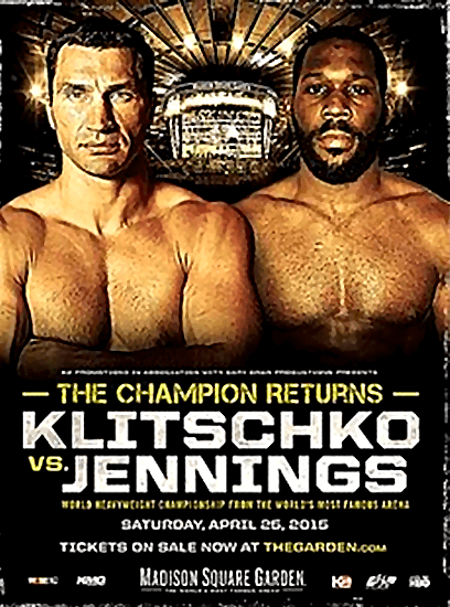 Wladimir Klitschko successfully defended his WBA (Super), IBF, WBO, IBO, and The Ring heavyweight titles against previously undefeated Bryant Jennings on April 25, 2015, at Madison Square Garden in New York City. The Ukrainian champion secured a unanimous decision victory with scores of 116-111 (twice) and 118-109, despite a less-than-stellar performance that left some fans and commentators underwhelmed.